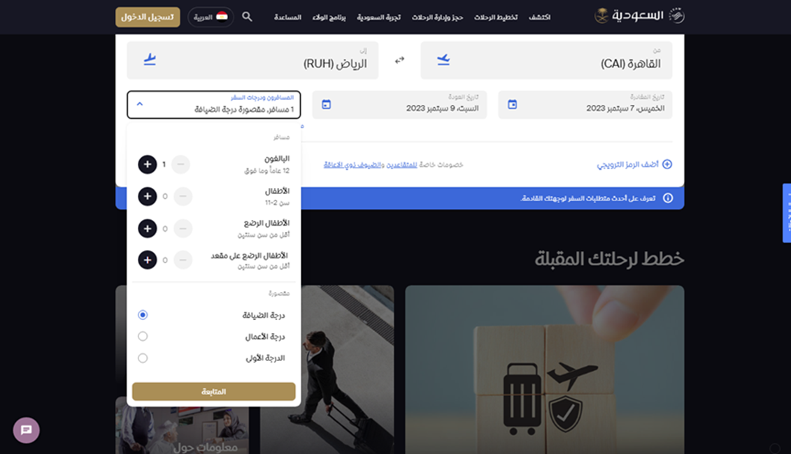 - يمكنك الحجز عبر الموقع الإلكتروني الخاص بشركة الخطوط السعودية كما ذكرنا سابقًا.