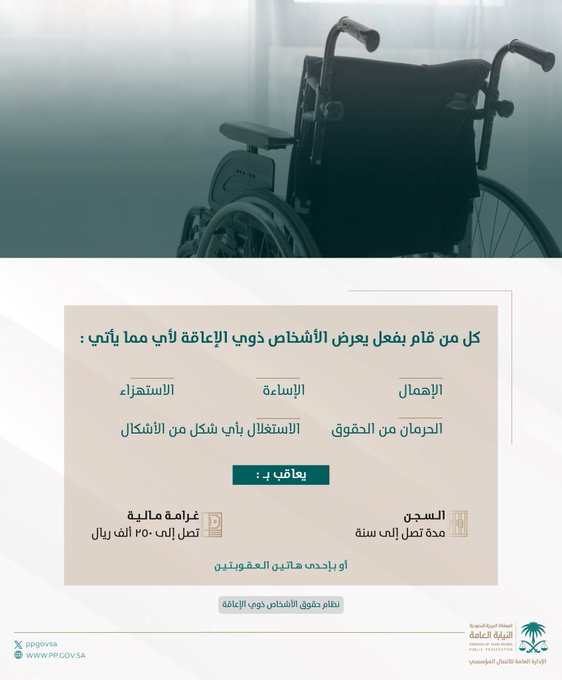 وبناءً عليه فقد أعلنت النيابة العامة عن وجود نظام معين، وأوضحت أن نظام حقوق الأشخاص ذوي الإعاقة يهدف إلى حمايتهم وتعزيز حقوقهم وضمان حصولهم على جميع الخدمات أسوةً بغيرهم، وتمكينهم من المشاركة في إدارة قضاياهم وفق الأحكام المنظمة لذلك.